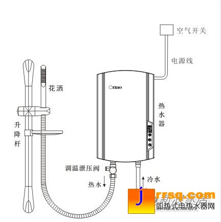 电热水器安装示意图, 电热水器安装图,即热式电热水器安装示意图