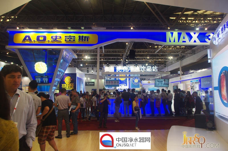 6月25日,2014上海国际水展(AQUATECH CHINA 2014)在世博展览馆盛大开幕。今年正值A.O.史密斯140周年庆,展馆南北门入口处两侧展示着A.O.史密斯140周年庆主题和反渗透净水机有效滤除重金属的画面,引人注目;步入展馆,接着映入眼帘的是A.O.史密斯巨幅广告,H1馆进口上方的显示屏也滚动播放着A.O.史密斯主题画面。这些系列画面相续相承,引领观展来宾步入A.O.史密斯的净水主展区。