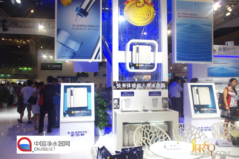 本届展会中A.O.史密斯携旗下全系列反渗透净水机产品及系统解决方案闪耀登场,涵盖工业、商用、出口及家用产品。A.O.史密斯作为拥有140年历史的全球性企业,是热水/采暖/净水集成水系统的领导者,始终坚持主推高品质的系统解决方案和应用服务。此次,A.O.史密斯展示的针对中国市场需求的以专利MAX3.0长效反渗透技术为核心的家用净水机产品,可以真正有效解决中国水体环境中重金属污染的威胁,符合中国消费者的切实需求